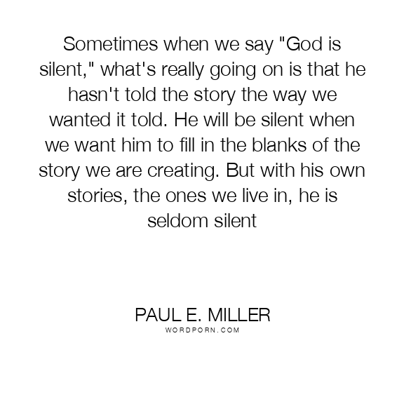 Sometimes when we say "God is silent," what's really going on is that he hasn't told the story the way we wanted it told. He will be silent when we want him to fill in the blanks of the story we are creating. But with his own stories, the ones we live in, he is seldom silent
