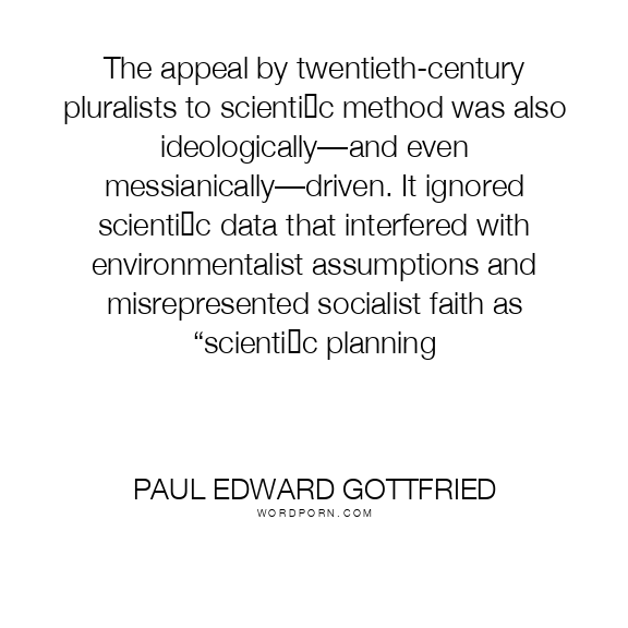 The appeal by twentieth-century pluralists to scientific method was also ideologically—and even messianically—driven. It ignored scientific data that interfered with environmentalist assumptions and misrepresented socialist faith as “scientific planning