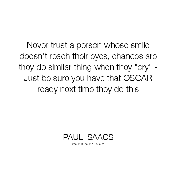 Never trust a person whose smile doesn't reach their eyes, chances are they do similar thing when they "cry" - Just be sure you have that OSCAR ready next time they do this