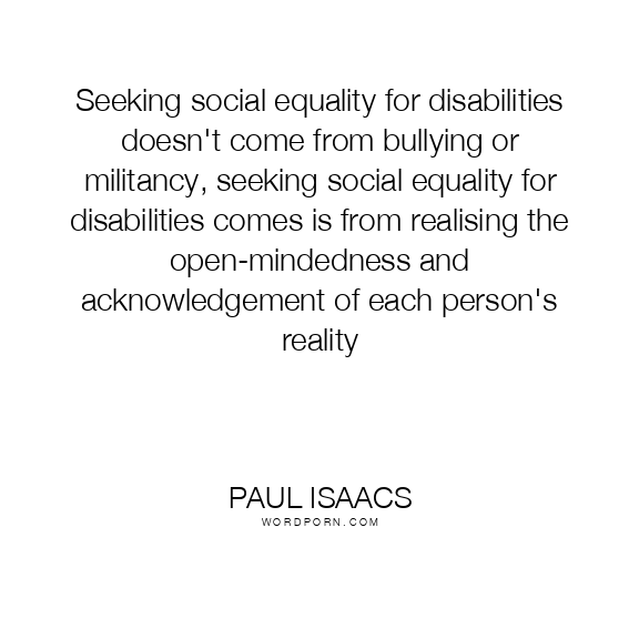 Seeking social equality for disabilities doesn't come from bullying or militancy, seeking social equality for disabilities comes is from realising the open-mindedness and acknowledgement of each person's reality
