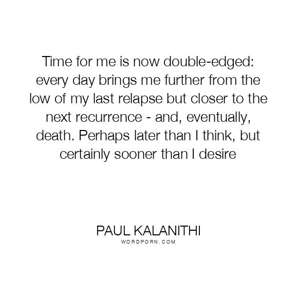 Time for me is now double-edged: every day brings me further from the low of my last relapse but closer to the next recurrence - and, eventually, death. Perhaps later than I think, but certainly sooner than I desire