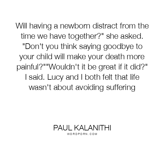 Will having a newborn distract from the time we have together?" she asked. "Don't you think saying goodbye to your child will make your death more painful?""Wouldn't it be great if it did?" I said. Lucy and I both felt that life wasn't about avoiding suffering