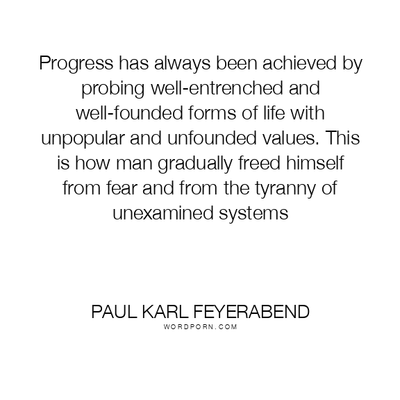 Progress has always been achieved by probing well-entrenched and well-founded forms of life with unpopular and unfounded values. This is how man gradually freed himself from fear and from the tyranny of unexamined systems