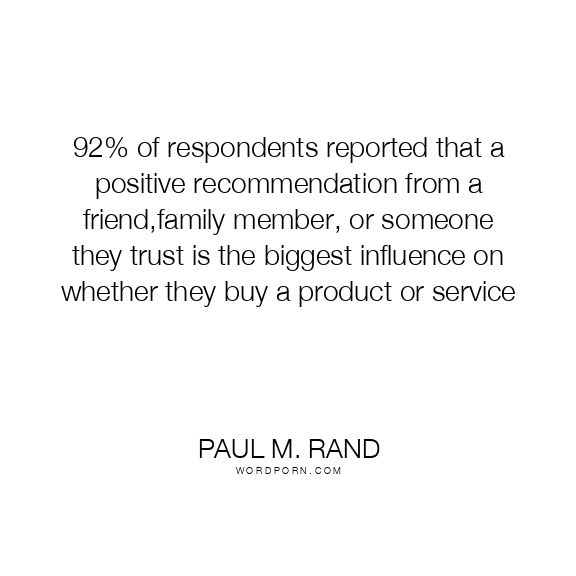 92% of respondents reported that a positive recommendation from a friend,family member, or someone they trust is the biggest influence on whether they buy a product or service