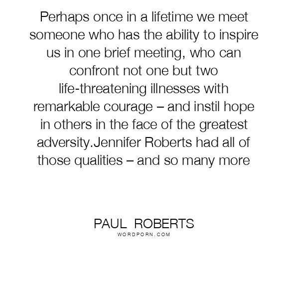 Perhaps once in a lifetime we meet someone who has the ability to inspire us in one brief meeting, who can confront not one but two life-threatening illnesses with remarkable courage – and instil hope in others in the face of the greatest adversity.Jennifer Roberts had all of those qualities – and so many more