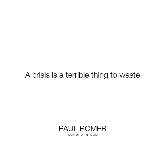 A crisis is a terrible thing to waste