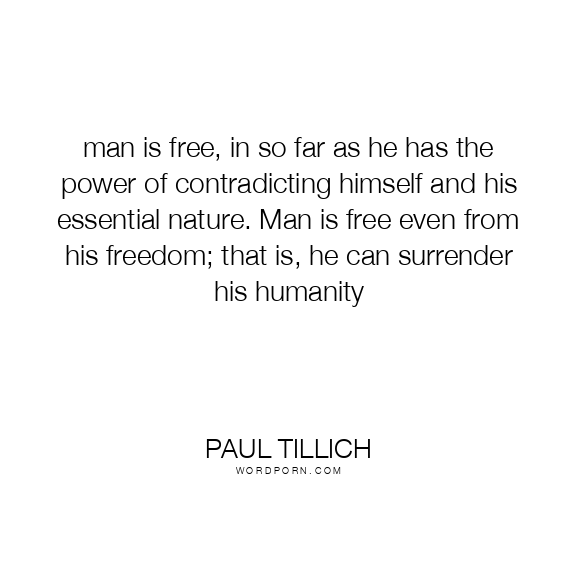 man is free, in so far as he has the power of contradicting himself and his essential nature. Man is free even from his freedom; that is, he can surrender his humanity
