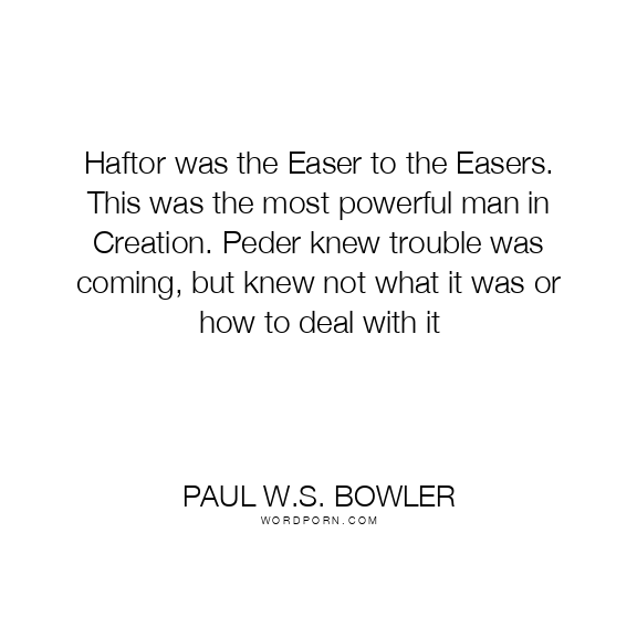 Haftor was the Easer to the Easers. This was the most powerful man in Creation. Peder knew trouble was coming, but knew not what it was or how to deal with it