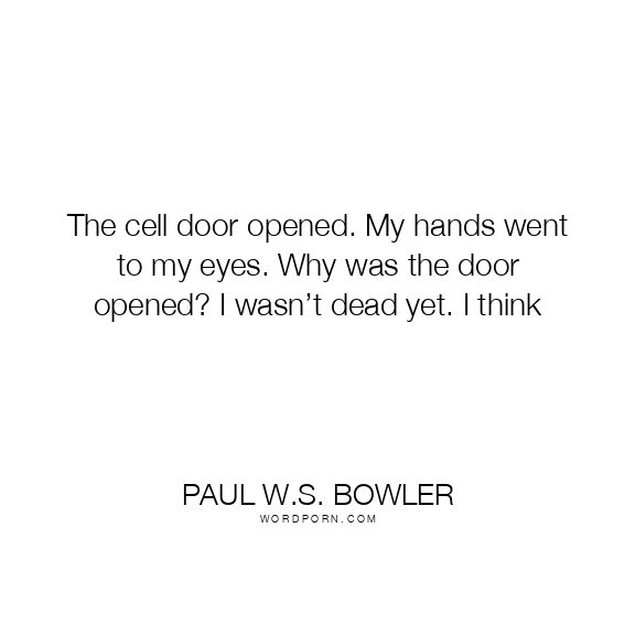 The cell door opened. My hands went to my eyes. Why was the door opened? I wasn’t dead yet. I think