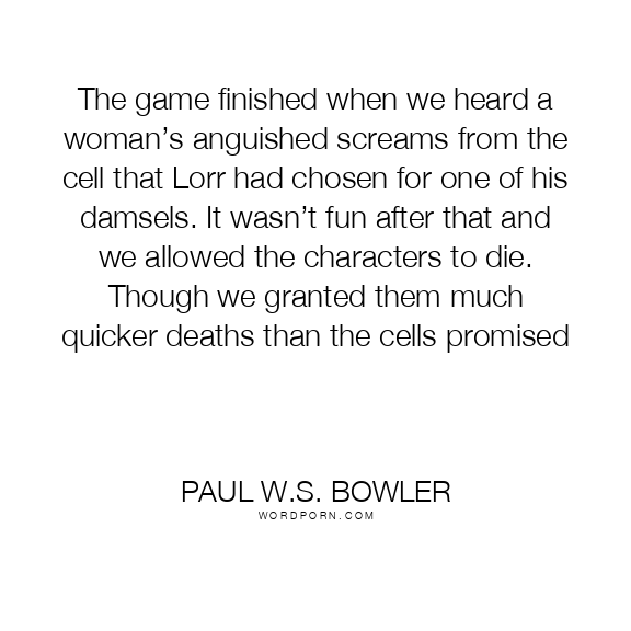 The game finished when we heard a woman’s anguished screams from the cell that Lorr had chosen for one of his damsels. It wasn’t fun after that and we allowed the characters to die. Though we granted them much quicker deaths than the cells promised