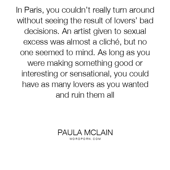 In Paris, you couldn’t really turn around without seeing the result of lovers’ bad decisions. An artist given to sexual excess was almost a cliché, but no one seemed to mind. As long as you were making something good or interesting or sensational, you could have as many lovers as you wanted and ruin them all