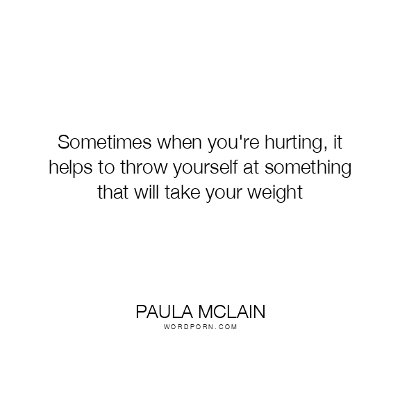 Sometimes when you're hurting, it helps to throw yourself at something that will take your weight