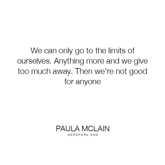 We can only go to the limits of ourselves. Anything more and we give too much away. Then we're not good for anyone