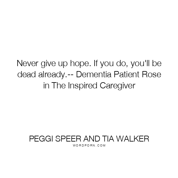 Copy Image Never give up hope. If you do, you'll be dead already.-- Dementia Patient Rose in The Inspired Caregiver Moms Typewriter A A SAVE THIS IMAGE