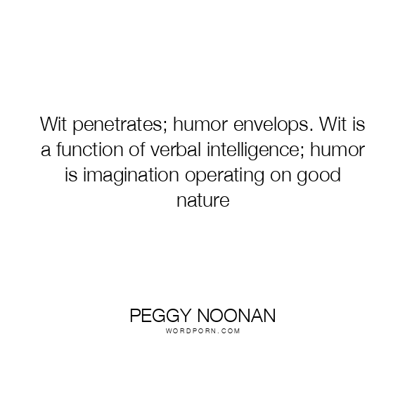Wit penetrates; humor envelops. Wit is a function of verbal intelligence; humor is imagination operating on good nature