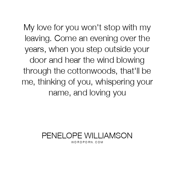 My love for you won't stop with my leaving. Come an evening over the years, when you step outside your door and hear the wind blowing through the cottonwoods, that'll be me, thinking of you, whispering your name, and loving you
