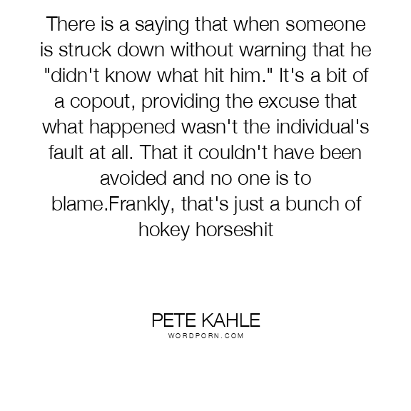 There is a saying that when someone is struck down without warning that he "didn't know what hit him." It's a bit of a copout, providing the excuse that what happened wasn't the individual's fault at all. That it couldn't have been avoided and no one is to blame.Frankly, that's just a bunch of hokey horseshit
