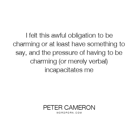 I felt this awful obligation to be charming or at least have something to say, and the pressure of having to be charming (or merely verbal) incapacitates me