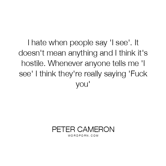 I hate when people say 'I see'. It doesn't mean anything and I think it's hostile. Whenever anyone tells me 'I see' I think they're really saying 'Fuck you'