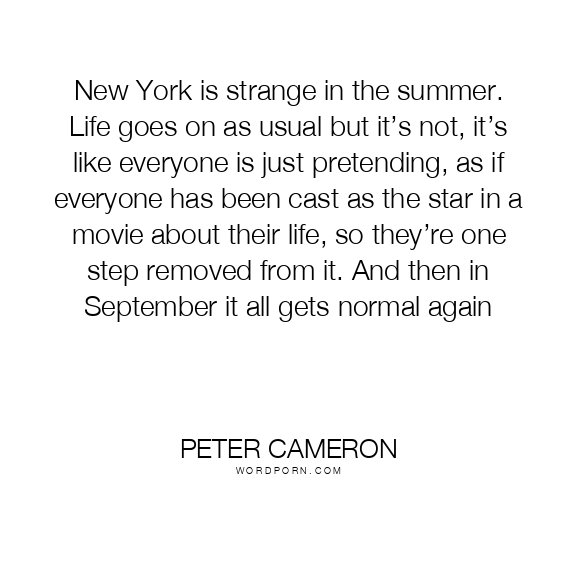 New York is strange in the summer. Life goes on as usual but it’s not, it’s like everyone is just pretending, as if everyone has been cast as the star in a movie about their life, so they’re one step removed from it. And then in September it all gets normal again