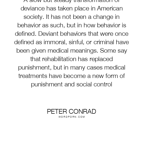 A slow but steady transformation of deviance has taken place in American society. It has not been a change in behavior as such, but in how behavior is defined. Deviant behaviors that were once defined as immoral, sinful, or criminal have been given medical meanings. Some say that rehabilitation has replaced punishment, but in many cases medical treatments have become a new form of punishment and social control