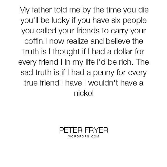 My father told me by the time you die you'll be lucky if you have six people you called your friends to carry your coffin.I now realize and believe the truth is I thought if I had a dollar for every friend I in my life I'd be rich. The sad truth is if I had a penny for every true friend I have I wouldn't have a nickel
