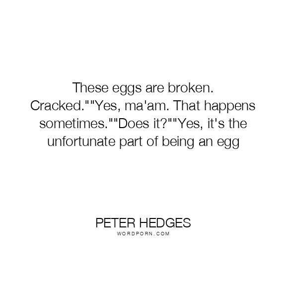 These eggs are broken. Cracked.""Yes, ma'am. That happens sometimes.""Does it?""Yes, it's the unfortunate part of being an egg