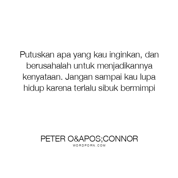 Putuskan apa yang kau inginkan, dan berusahalah untuk menjadikannya kenyataan. Jangan sampai kau lupa hidup karena terlalu sibuk bermimpi