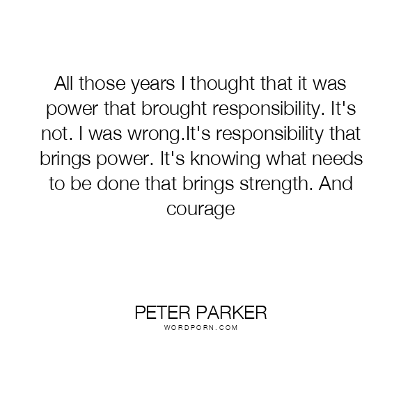 All those years I thought that it was power that brought responsibility. It's not. I was wrong.It's responsibility that brings power. It's knowing what needs to be done that brings strength. And courage