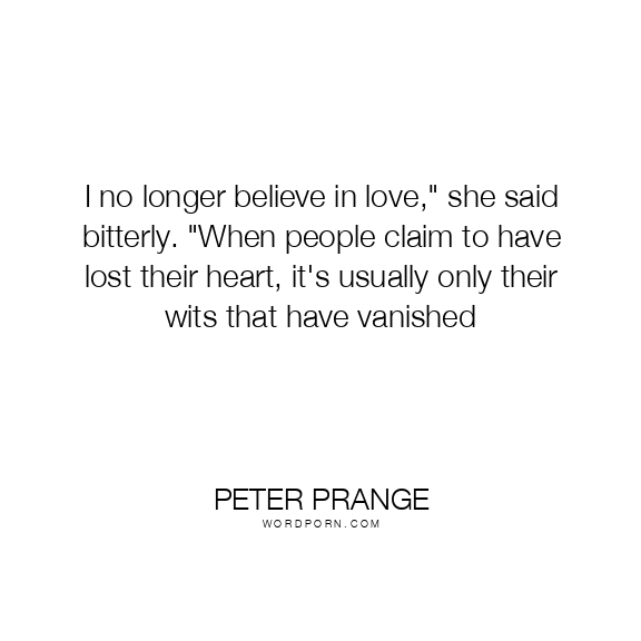 I no longer believe in love," she said bitterly. "When people claim to have lost their heart, it's usually only their wits that have vanished