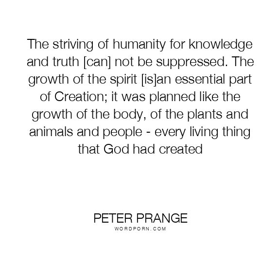 The striving of humanity for knowledge and truth [can] not be suppressed. The growth of the spirit [is]an essential part of Creation; it was planned like the growth of the body, of the plants and animals and people - every living thing that God had created