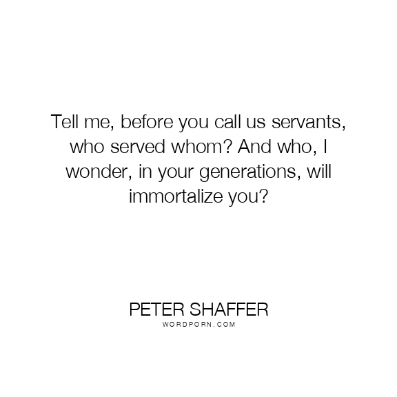 Tell me, before you call us servants, who served whom? And who, I wonder, in your generations, will immortalize you?
