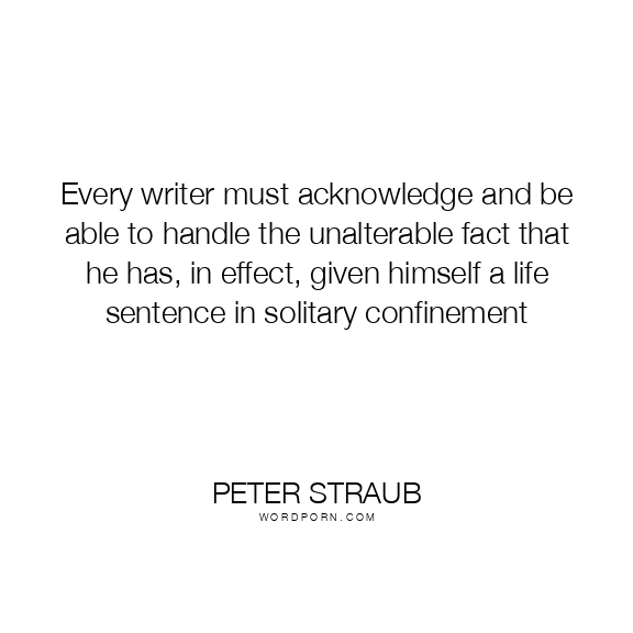 Every writer must acknowledge and be able to handle the unalterable fact that he has, in effect, given himself a life sentence in solitary confinement