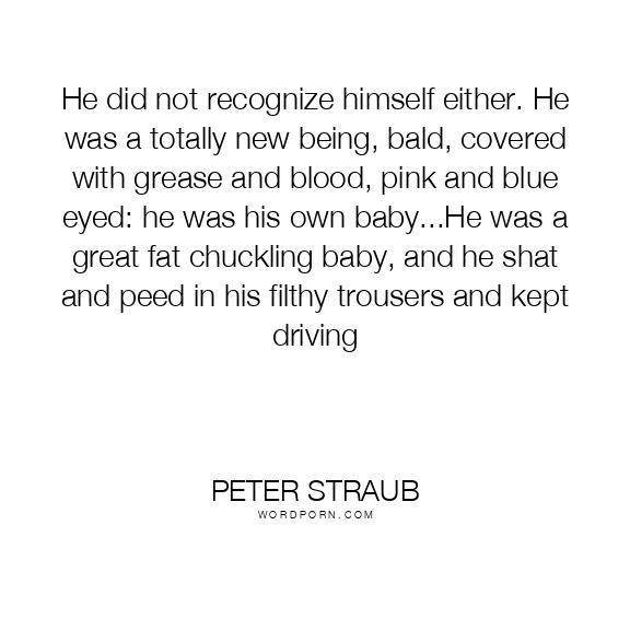 He did not recognize himself either. He was a totally new being, bald, covered with grease and blood, pink and blue eyed: he was his own baby...He was a great fat chuckling baby, and he shat and peed in his filthy trousers and kept driving