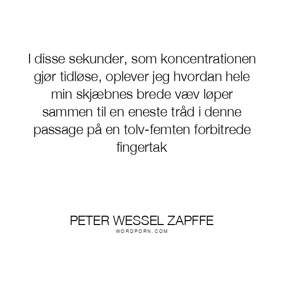 I disse sekunder, som koncentrationen gjør tidløse, oplever jeg hvordan hele min skjæbnes brede væv løper sammen til en eneste tråd i denne passage på en tolv-femten forbitrede fingertak
