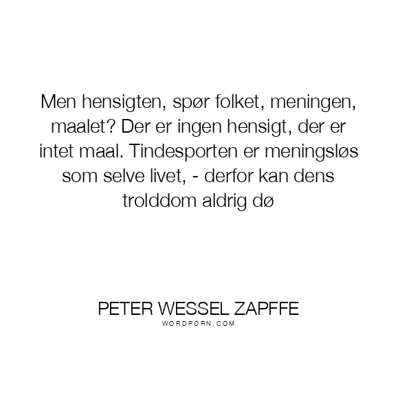 Men hensigten, spør folket, meningen, maalet? Der er ingen hensigt, der er intet maal. Tindesporten er meningsløs som selve livet, - derfor kan dens trolddom aldrig dø