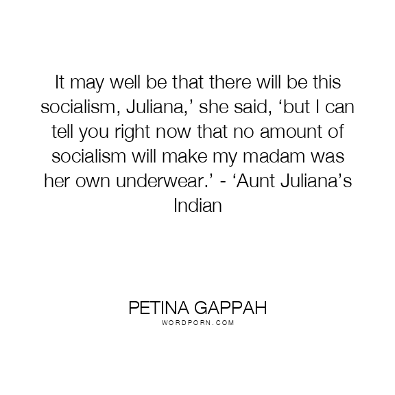 It may well be that there will be this socialism, Juliana,’ she said, ‘but I can tell you right now that no amount of socialism will make my madam was her own underwear.’ - ‘Aunt Juliana’s Indian