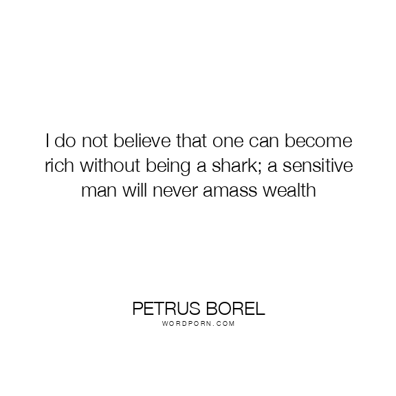 I do not believe that one can become rich without being a shark; a sensitive man will never amass wealth