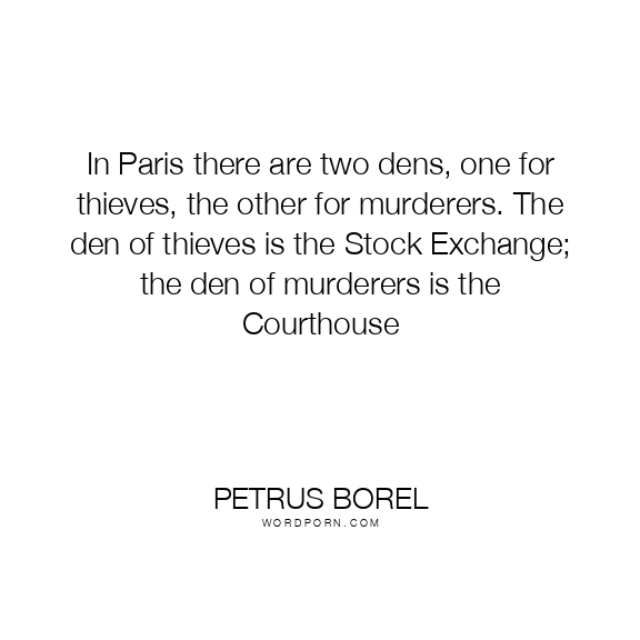 In Paris there are two dens, one for thieves, the other for murderers. The den of thieves is the Stock Exchange; the den of murderers is the Courthouse