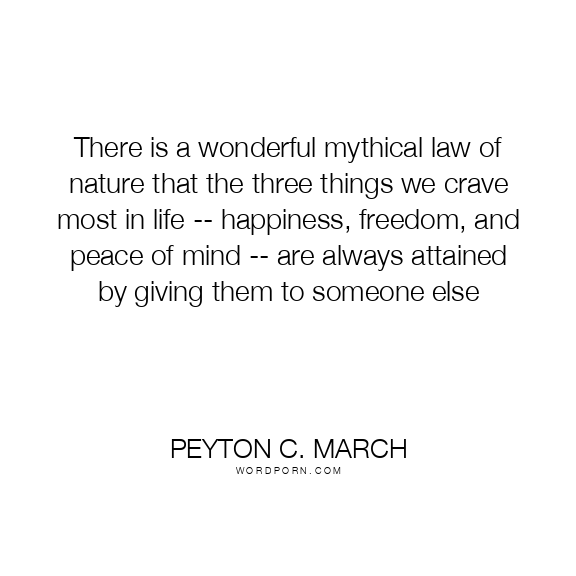 There is a wonderful mythical law of nature that the three things we crave most in life -- happiness, freedom, and peace of mind -- are always attained by giving them to someone else