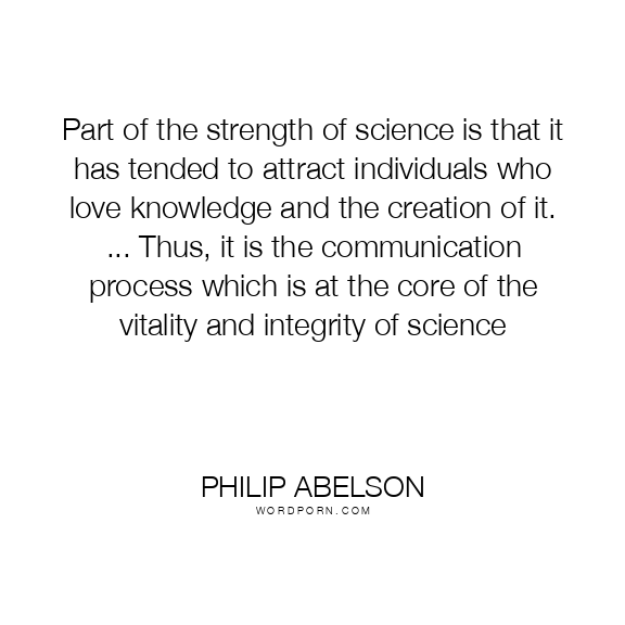 Part of the strength of science is that it has tended to attract individuals who love knowledge and the creation of it. ... Thus, it is the communication process which is at the core of the vitality and integrity of science