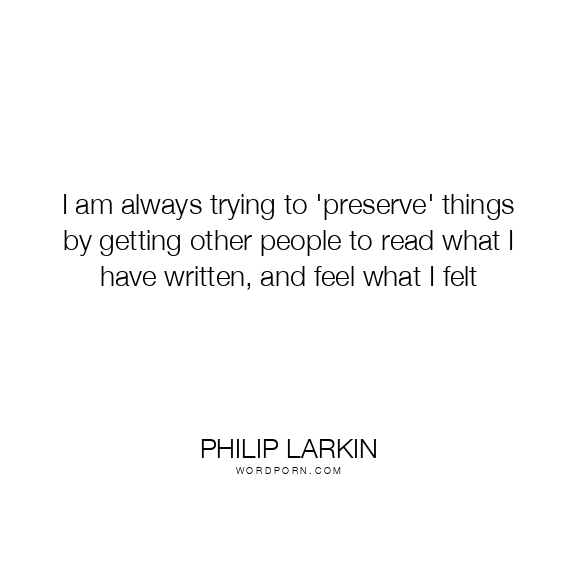 I am always trying to 'preserve' things by getting other people to read what I have written, and feel what I felt
