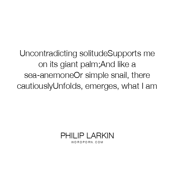 Uncontradicting solitudeSupports me on its giant palm;And like a sea-anemoneOr simple snail, there cautiouslyUnfolds, emerges, what I am