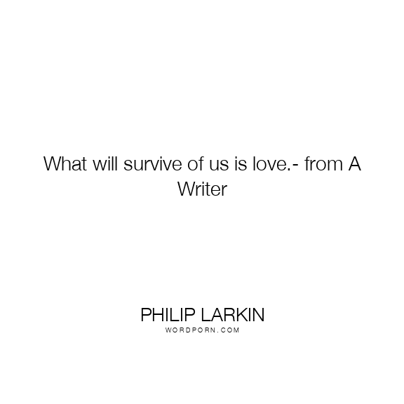 What will survive of us is love.- from A Writer