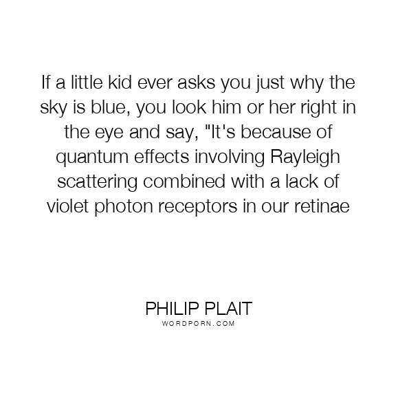 If a little kid ever asks you just why the sky is blue, you look him or her right in the eye and say, "It's because of quantum effects involving Rayleigh scattering combined with a lack of violet photon receptors in our retinae