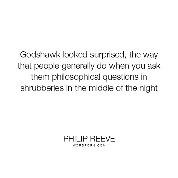 Godshawk looked surprised, the way that people generally do when you ask them philosophical questions in shrubberies in the middle of the night