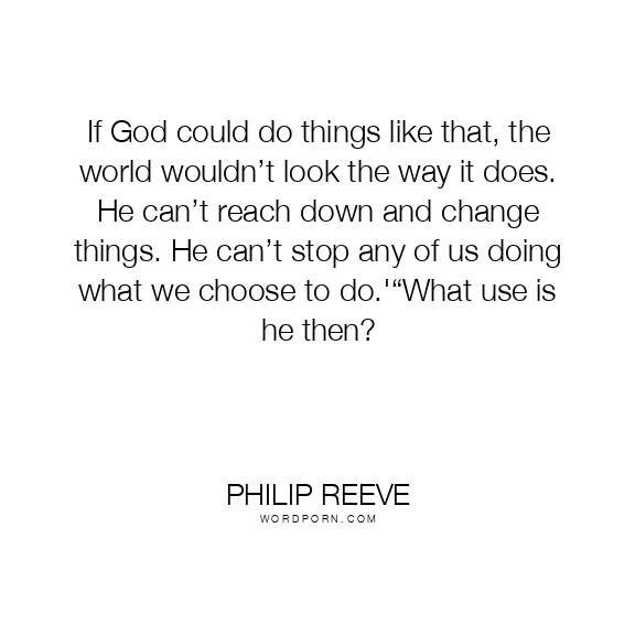 If God could do things like that, the world wouldn’t look the way it does. He can’t reach down and change things. He can’t stop any of us doing what we choose to do.'“What use is he then?