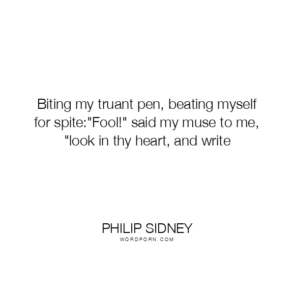 Biting my truant pen, beating myself for spite:"Fool!" said my muse to me, "look in thy heart, and write