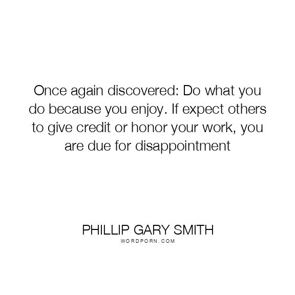 Once again discovered: Do what you do because you enjoy. If expect others to give credit or honor your work, you are due for disappointment