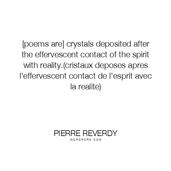 [poems are] crystals deposited after the effervescent contact of the spirit with reality.(cristaux deposes apres l'effervescent contact de l'esprit avec la realite)